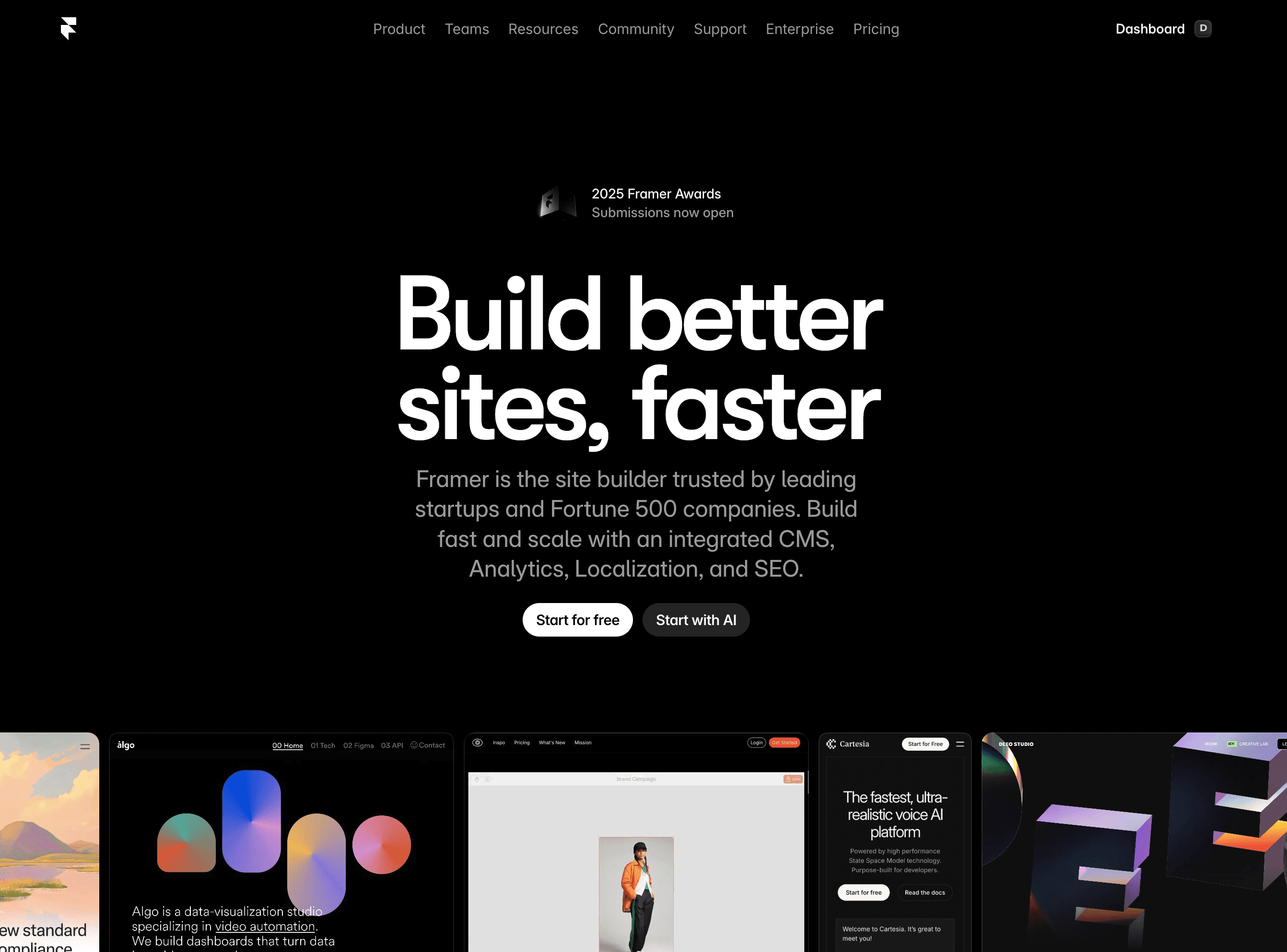 Whether you're working on a website for your business or a design portfolio, Framer has everything you need to build professional websites, fast. Get started with Framer's Figma-like interface, powerful CMS, and built-in SEO.